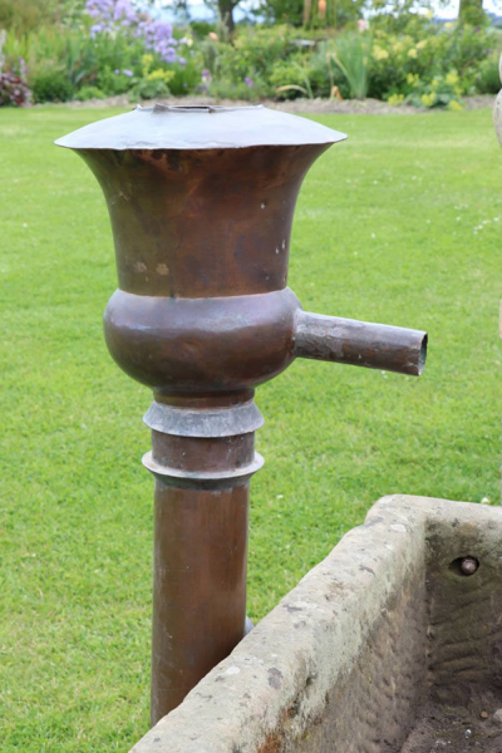Very statuesque tall copper pump. A fine piece. Will make a wonderful water feature teamed up with a trough.