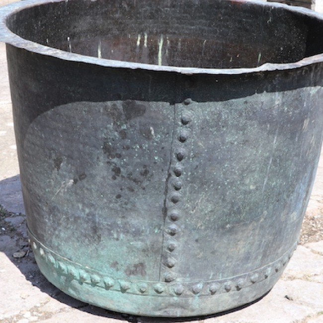 This is a really lovely size for planting. Good condition and a lovely colour. There is a slight bit of damage to the rim - a split which you cannot see until closer inspection. A really lovely copper.