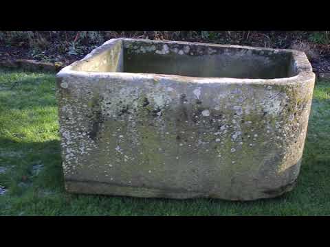A beautiful sandstone trough with one rounded front corner. This is a wide rectangular trough in great condition. The rounded front corner would work really well if trough placed in a corner. Lovely and deep for planting. Has a fissure along the base - pinned so totally secure. From the Forest of Dean area. Beautiful colours to the stone.